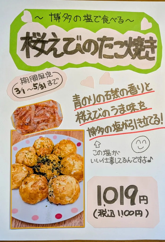 春の期間限定🌸博多の塩で食べる桜えび🦐のたこ焼き🐙