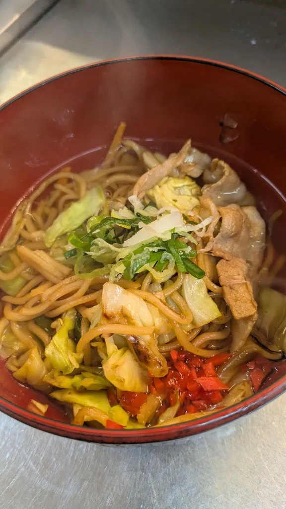 平日はあまり注文が入らないことも多い 野菜たっぷり肉入り焼きそば が、なぜか今日はよく出ました(^^)